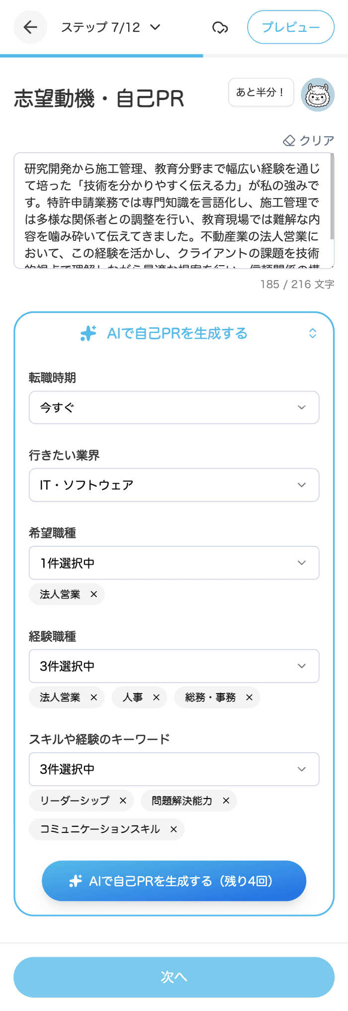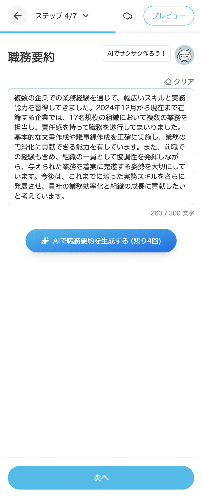 職務経歴書の長文もAIにおまかせ
